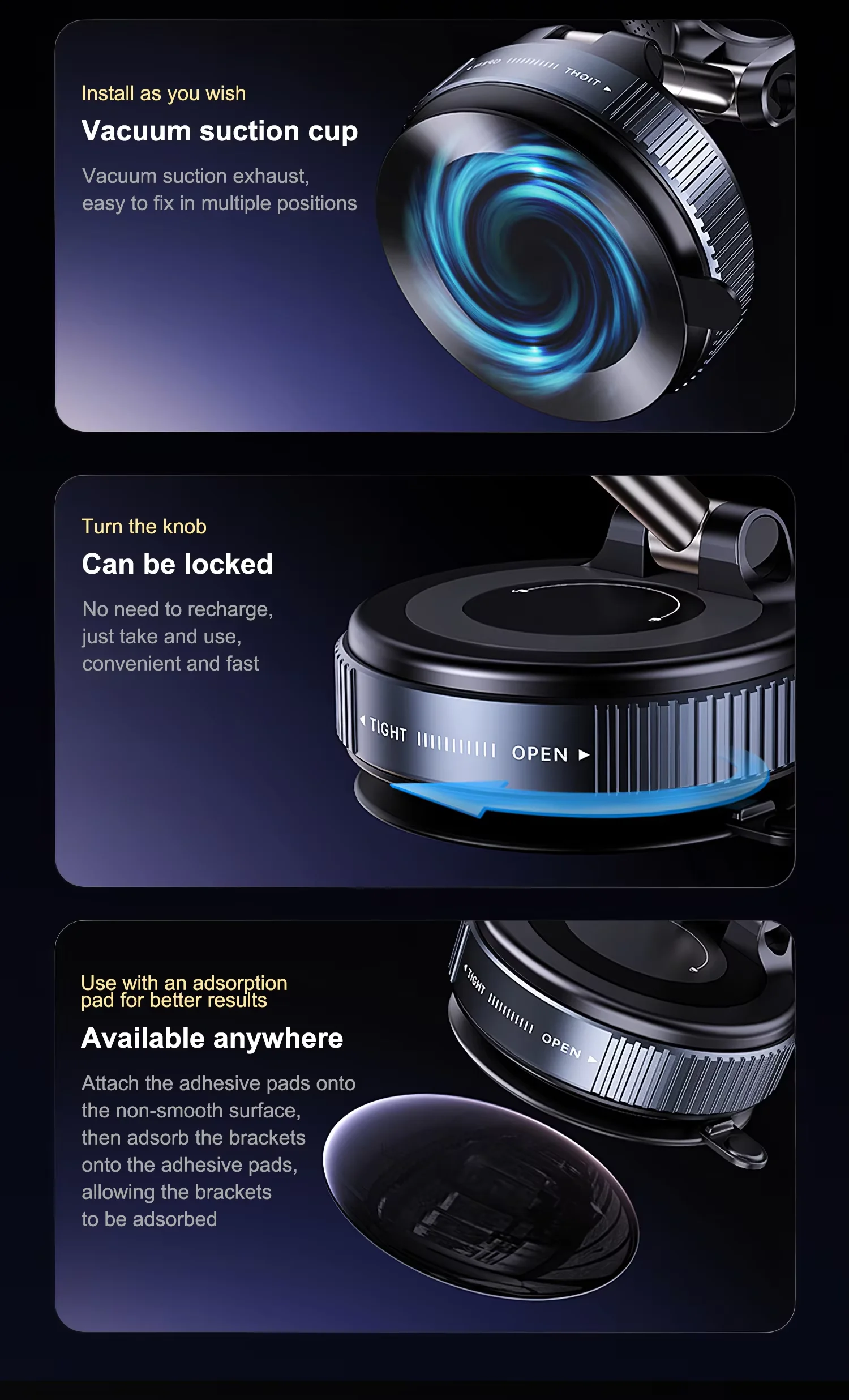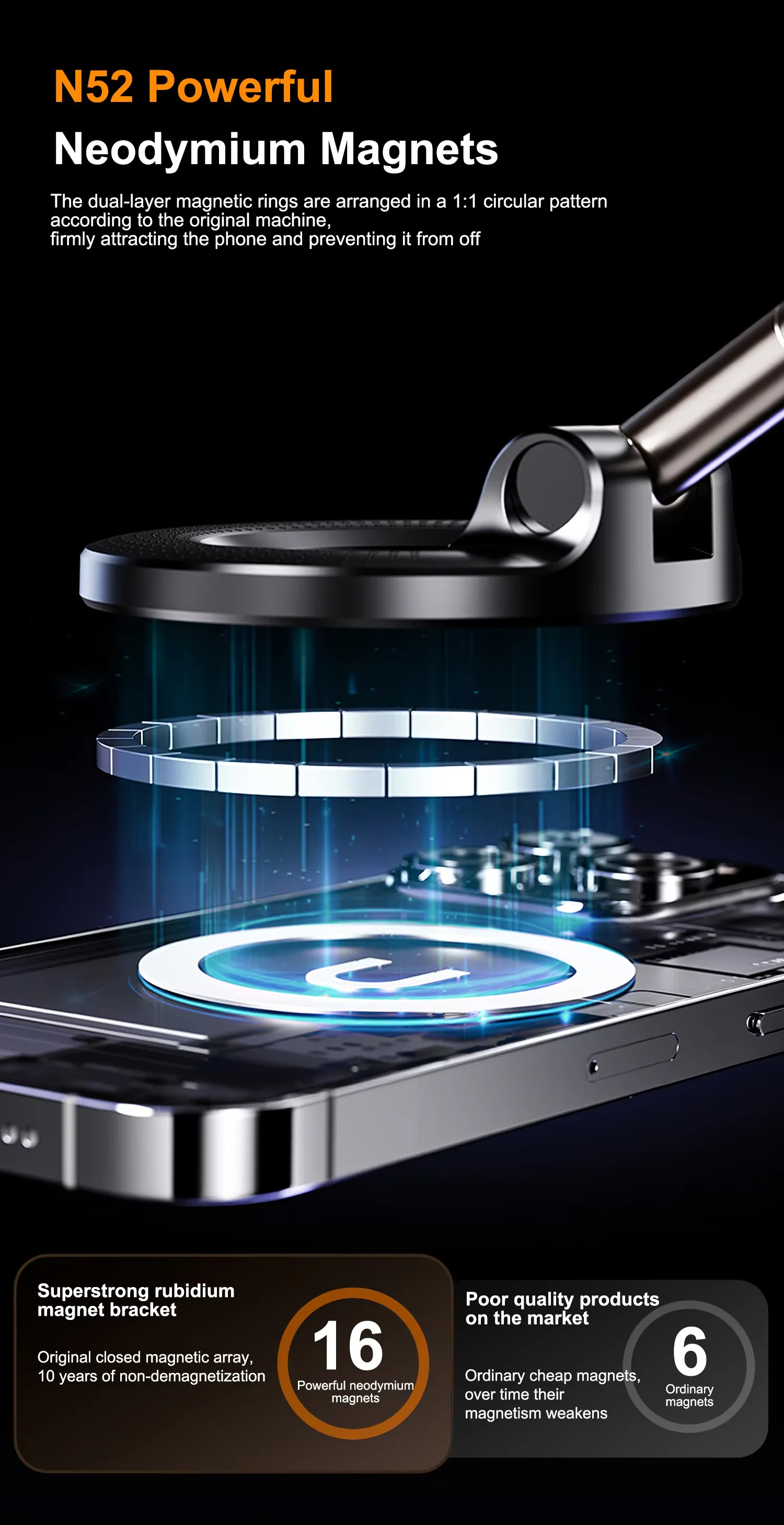 Width adjustable, 360 degree rotation phone holder.Strong Magnets