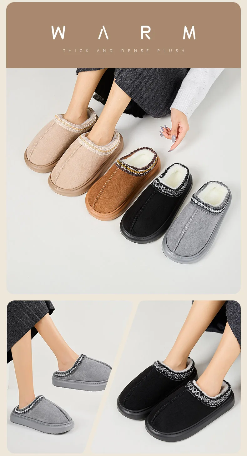 Winter Soft Faux Suede Fluffy Fur Home Indoor Warm Plush Ladies Men Shoes Slides Slippers for Women